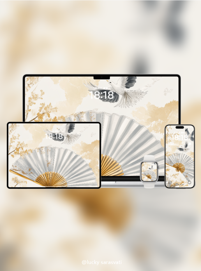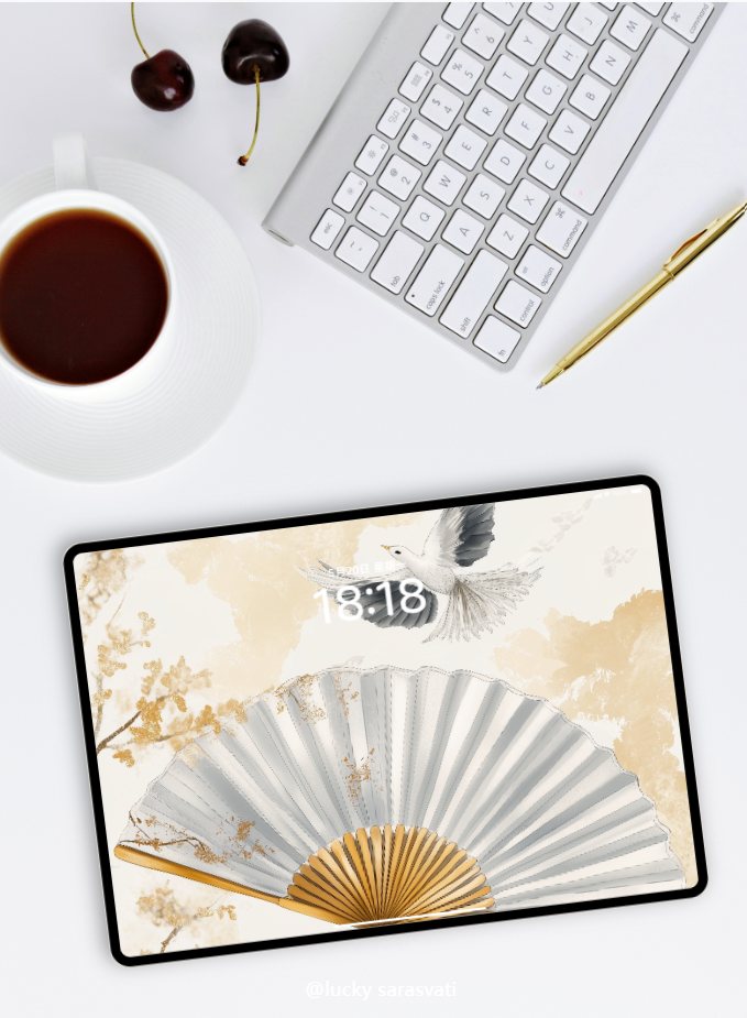 美音天能量壁紙"白雲悠悠·扇" 事業運&人際關係系列 高清 限量發行 Sarasvati Energy Wallpaper "Wandering White Clouds·Fan" Career&Interpersonal Relationship series HD Limited edition
