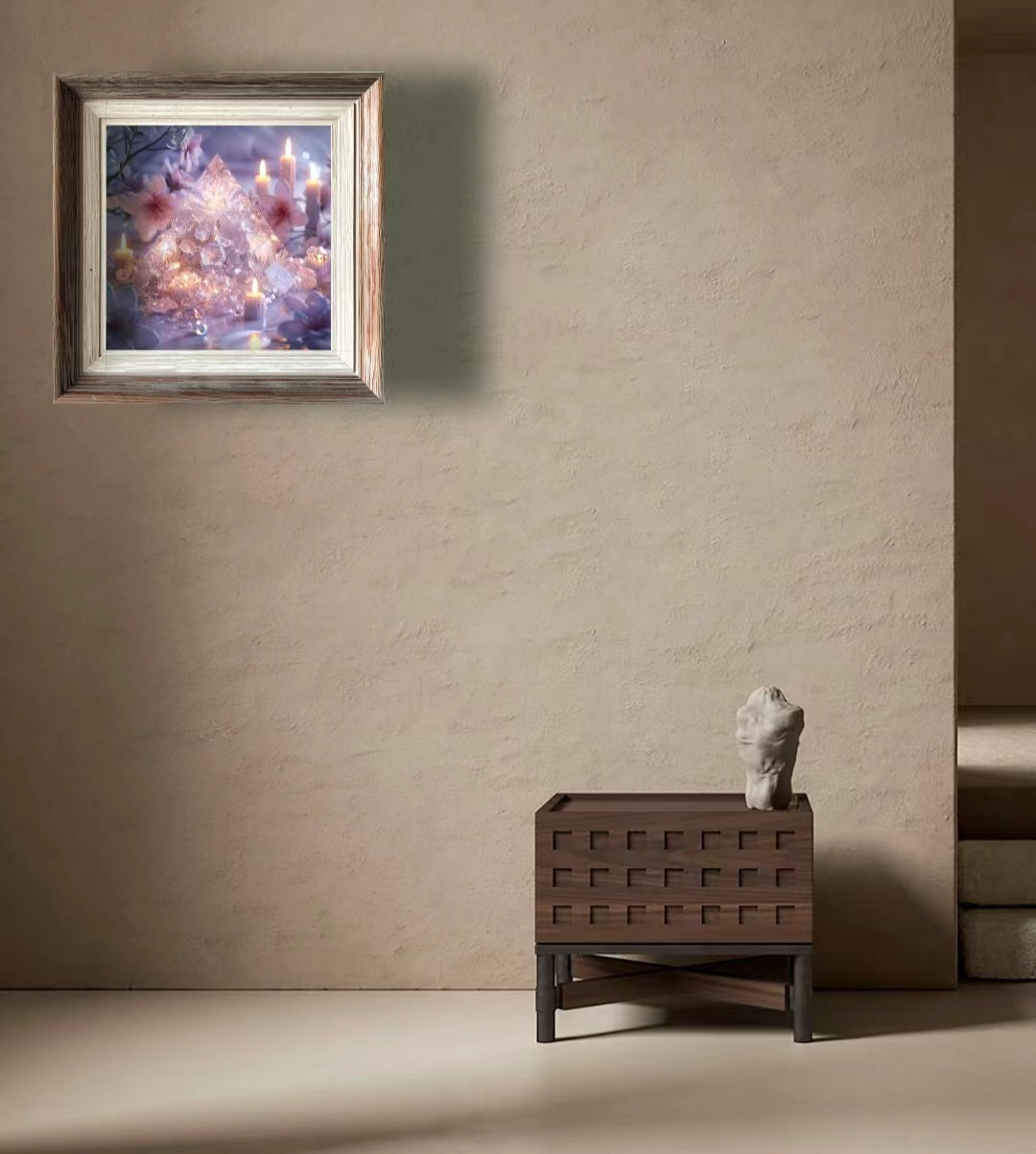 Artistic conception of the work: The artistic conception of this work comes from the famous sentence of Yan Jidao, a poet in the Song Dynasty: "When the clothes are gradually widened, I will not regret it, and I will be haggard." A loved one is willing to give everything for you, symbolizing the depth of emotion and persistence. Transparent and subtle pink symbolize purity and tenderness, just like the soft mood of first love, and a gentle touch can cause ripples. The energy stone placed at the bottom of the pyramid, the translucent pyramid is in full bloom with the flowers of youth, just like those beautiful moments in love, which makes people enjoy endless aftertastes