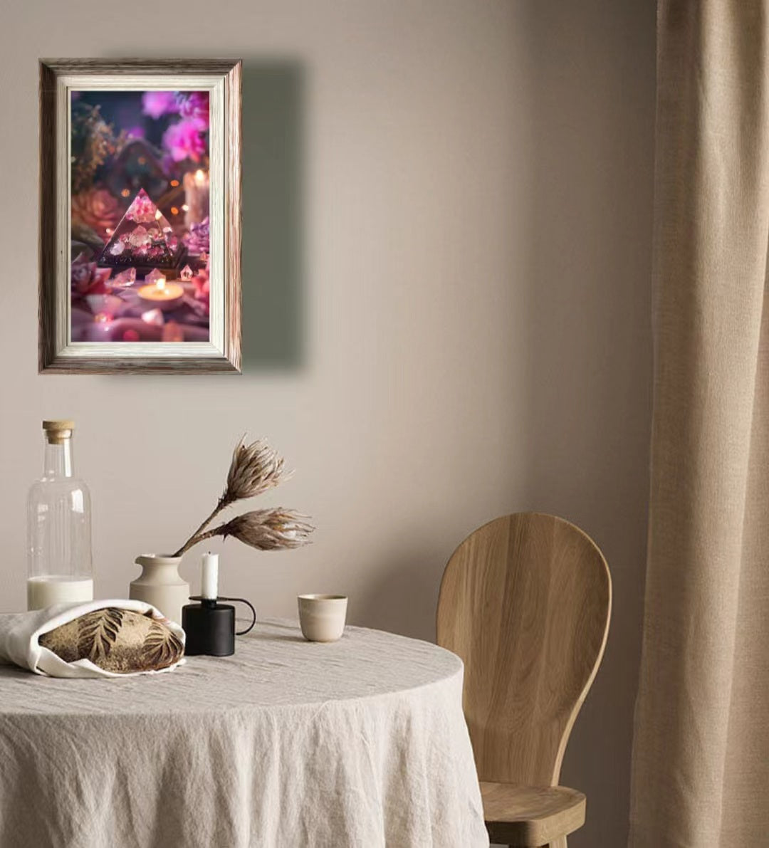 (3) Digital orgone pyramid can be stored in any of your electronic devices, including but not limited to computers, TV, pads, game machine, smart phones, smart watches, electronic photo frames, electronic albums and other smart devices, you can also set the digital orgone pyramid to become your wallpaper, you can also print the digital orgone pyramid as a physical photo or place the picture in three-dimensional space, you can also print the digital orgone pyramid on physical objects such as cups, bookmark, canvas bag, etc.