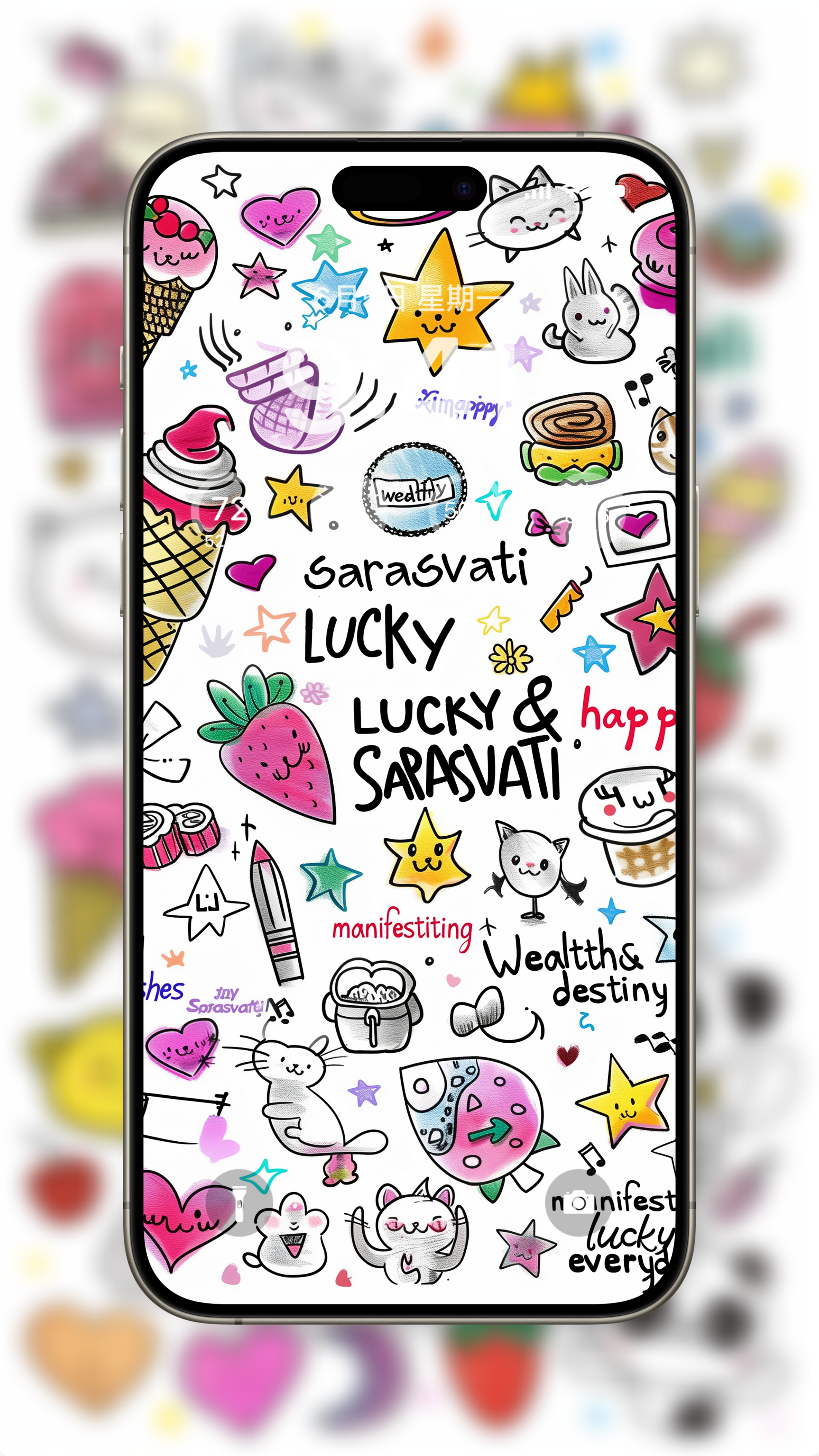 Sarasvati Energy Wallpaper "Wonderful Good Luck Stickers 04" Série Wealth&Lucky HD Édition limitée