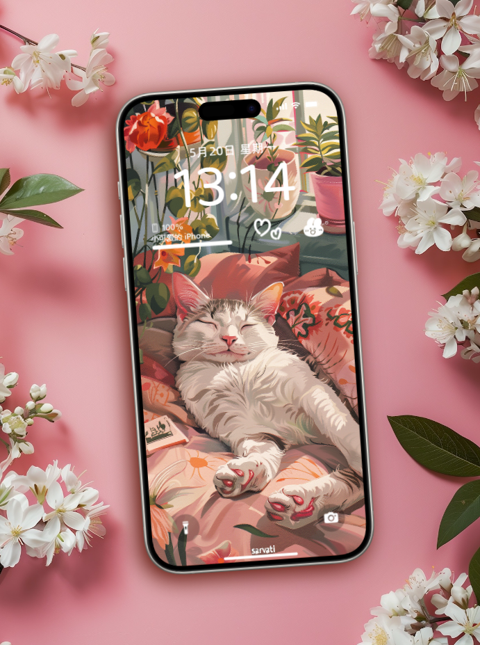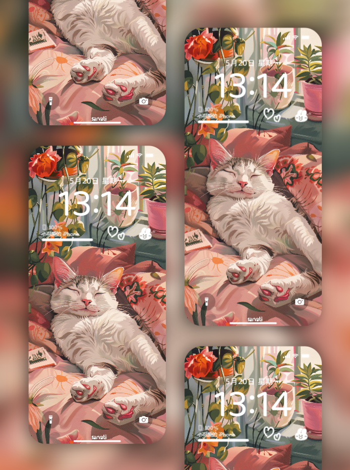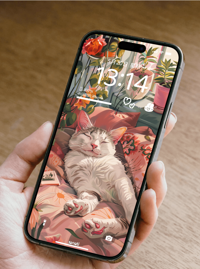 美音天能量壁紙“慵懶樂貓貓"財運&戀愛運系列 高清 限量发行 Sarasvati Energy Wallpaper "Relaxed Joyful Kitty" Wealth&Love series HD Limited edition
