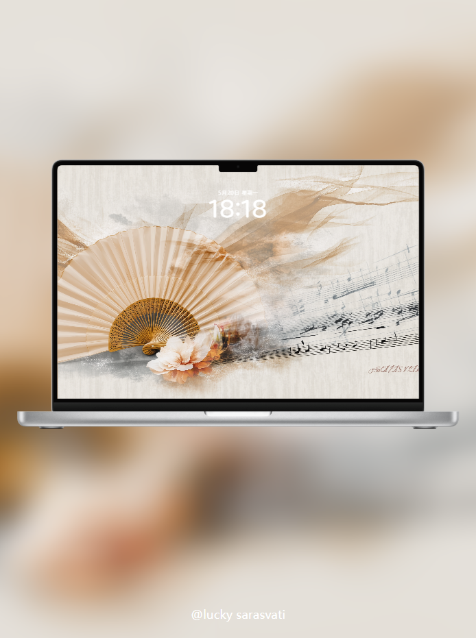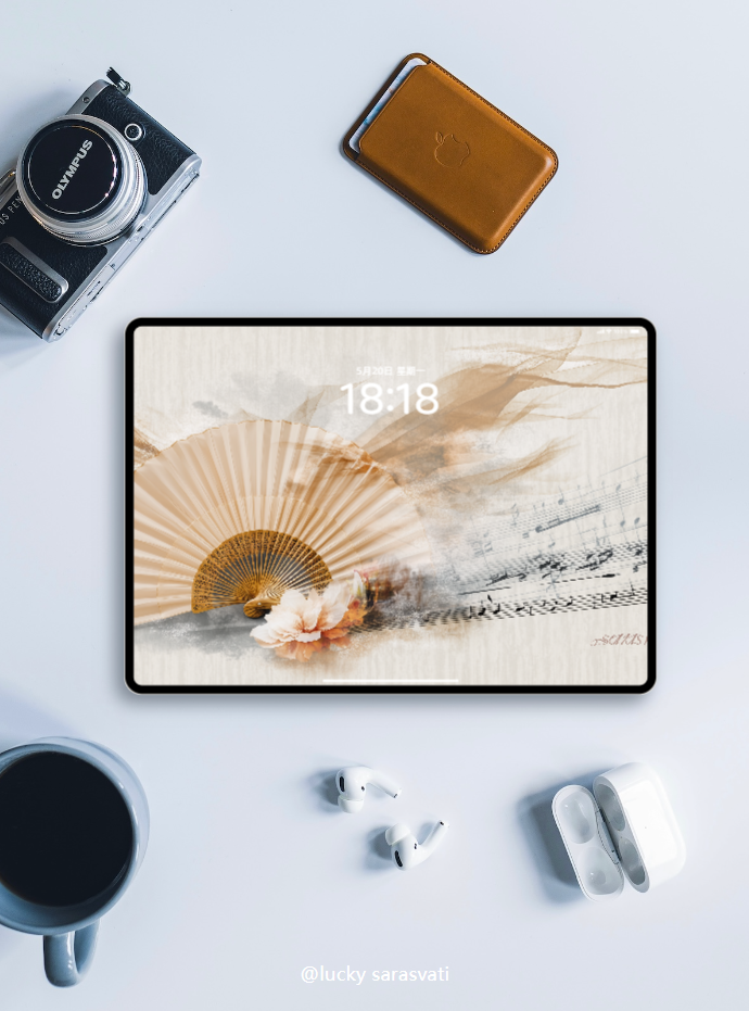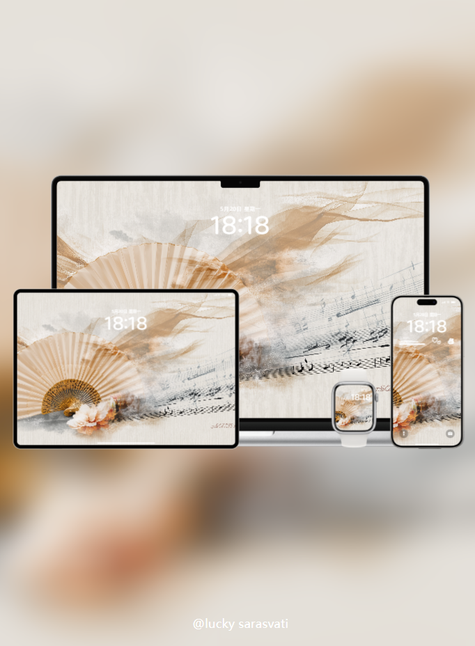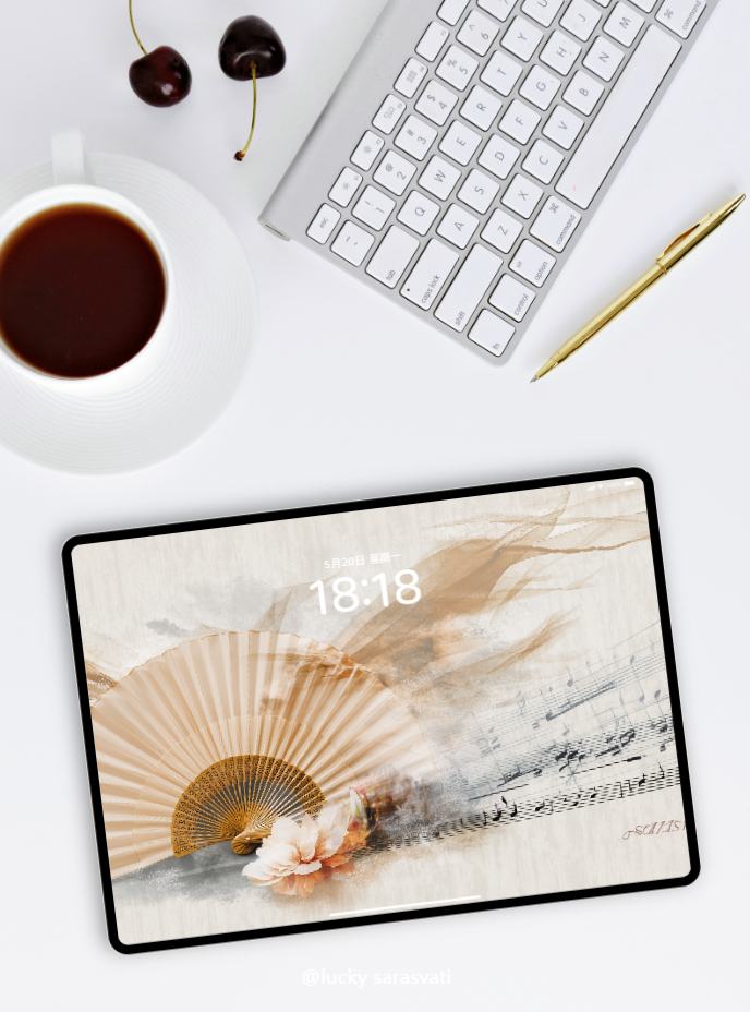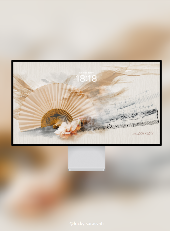 美音天能量壁紙"秋月春風·扇" 事業運&人際關係系列 高清 限量發行 Sarasvati Energy Wallpaper "Autumn Moon Spring Breeze·Fan" Career&Interpersonal Relationship series HD Limited edition