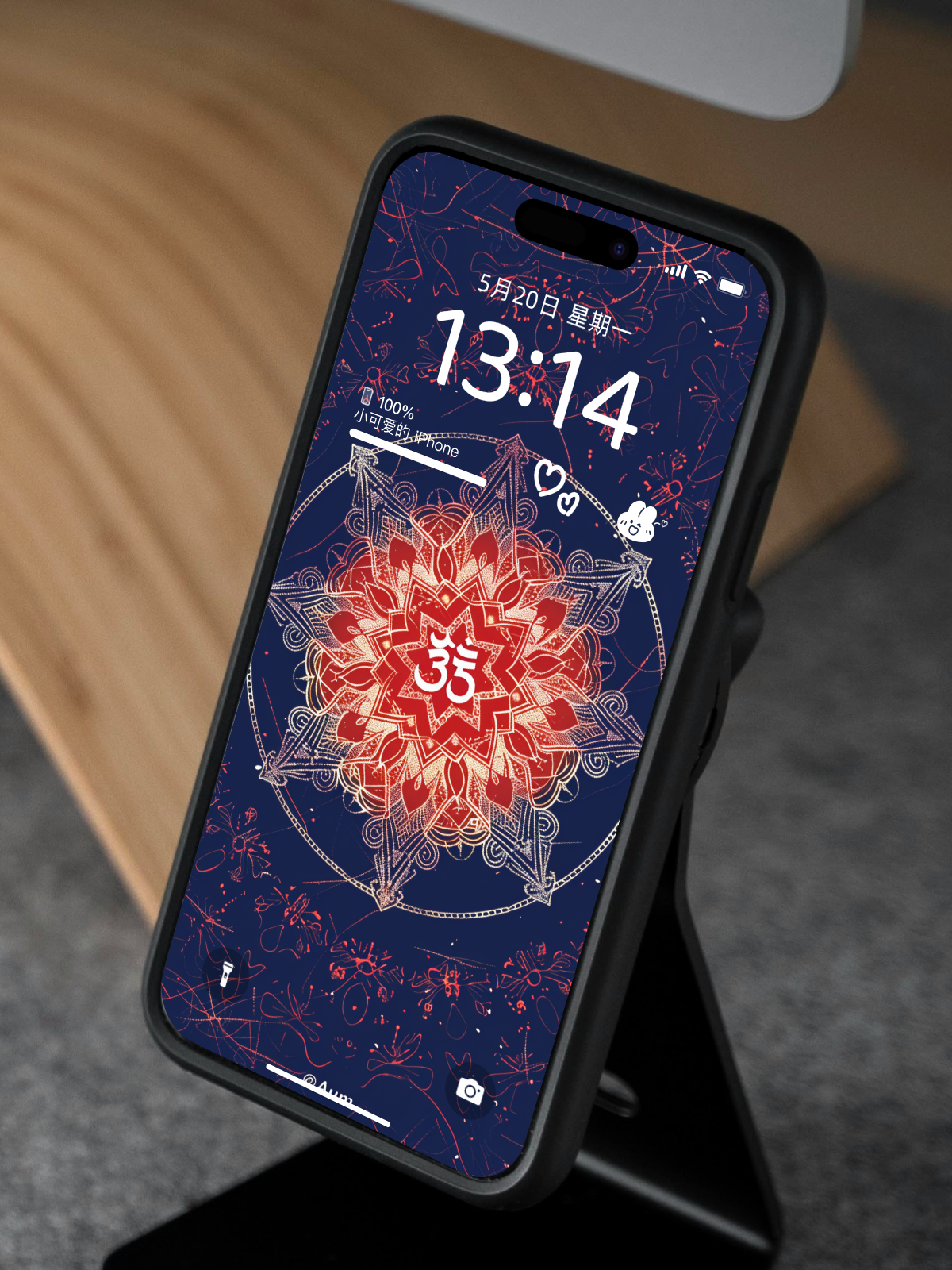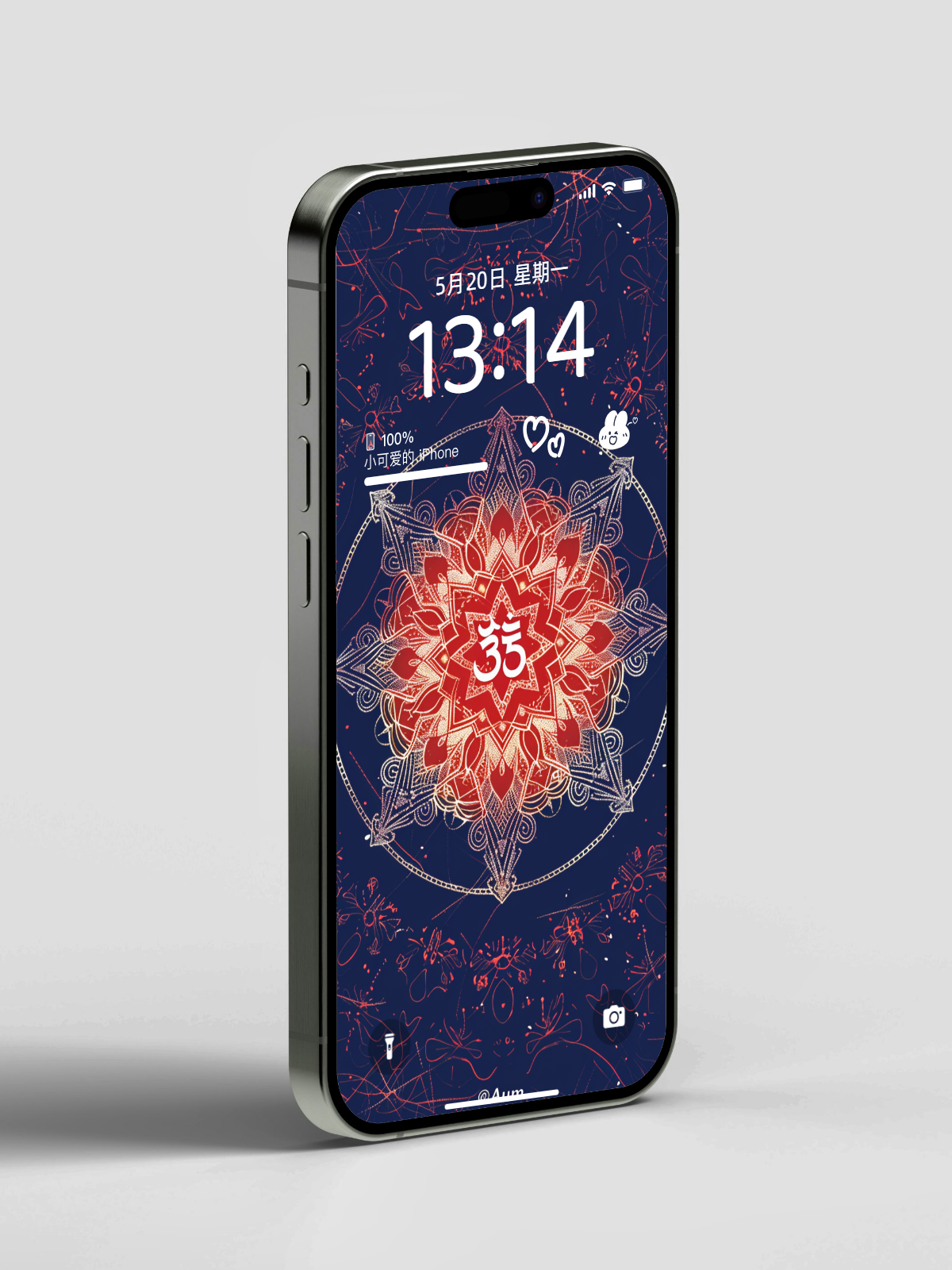 壁紙中心圖案介紹: 「ॐ」念Om,是一個發音(梵文「ॐ」),最早出現於印度教經典《吠陀經》中。古代的印度認為”Om”是宇宙萬物的起源,是宇宙第一個震動的聲音,它代表創造開始的源頭,萬物的基礎。Om有助幫助大腦放鬆、重設大腦注意力、減除雜念、舒緩情緒、令自己開始進入比較平靜的狀態、促使身心平衡、喚醒自身內在的力量從而產生能量、引領我們進入更高的靈魂層次並與宇宙連接。(*在科學的角度,科學家亦發現唱頌Mantra (*包括Om在內*)有令呼吸放慢、心跳平穩且緩和的作用。因此唱頌被認為對身心靈都很有益處。)