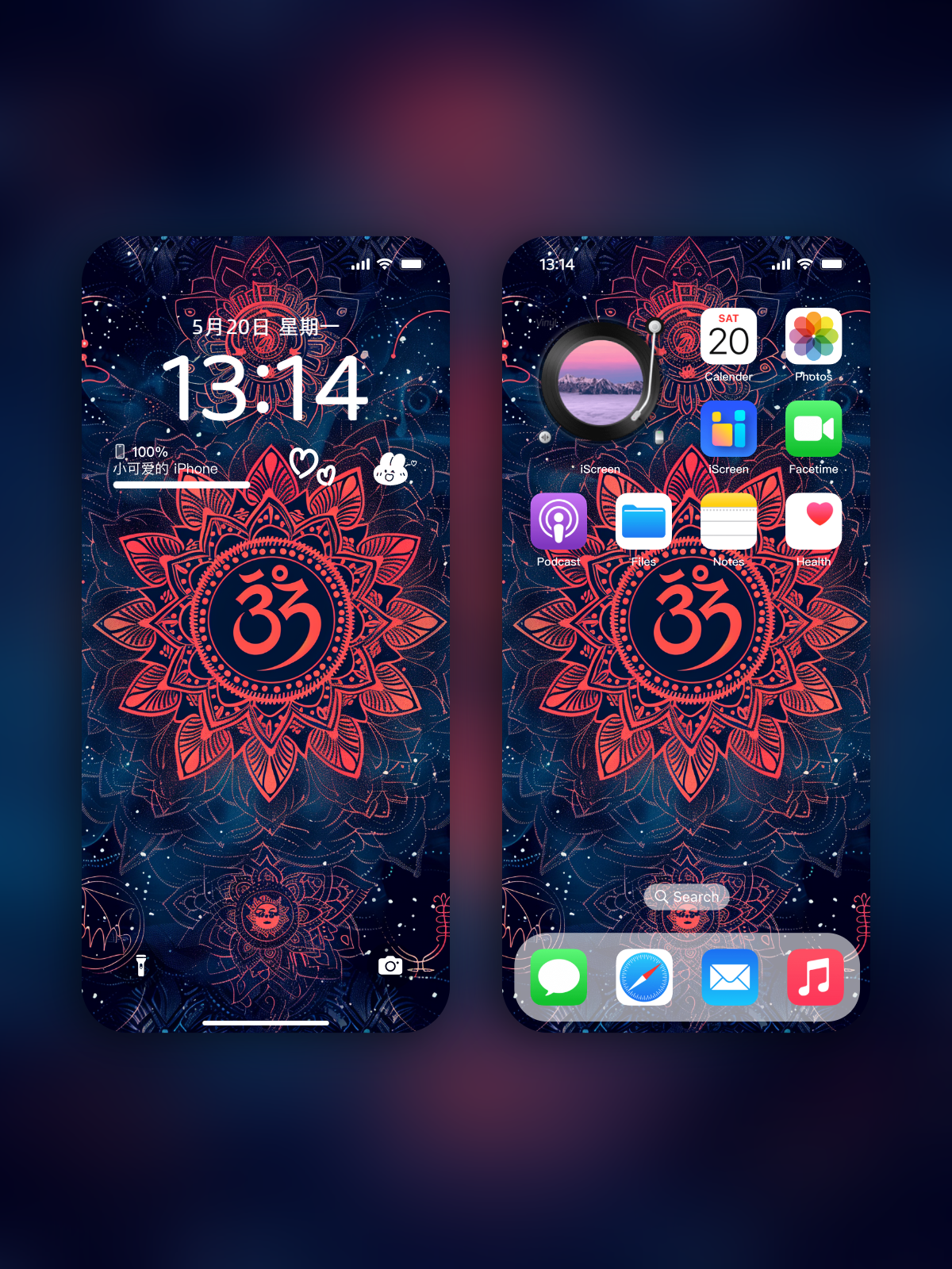 Wallpaper center pattern introduction: "ॐ" pronounced Om, is a pronunciation (Sanskrit "ॐ") that first appears in the Hindu classic Vedas. Ancient India believed that "Om" was the origin of all things in the universe, the first vibrating sound of the universe, which represented the source of the beginning of creation and the foundation of all things. Om helps to relax the brain, refocus the brain, reduce distractions, relieve emotions, start ourselves into a more peaceful state, promote physical and mental balance, awaken the power within ourselves to generate energy, lead us to the higher levels of the soul and connect with the universe. (* From a scientific point of view, scientists have also found that chanting Mantra (* including Om *) has the effect of slowing breathing, calming and calming the heart rate. So singing is thought to be good for the mind and body.)