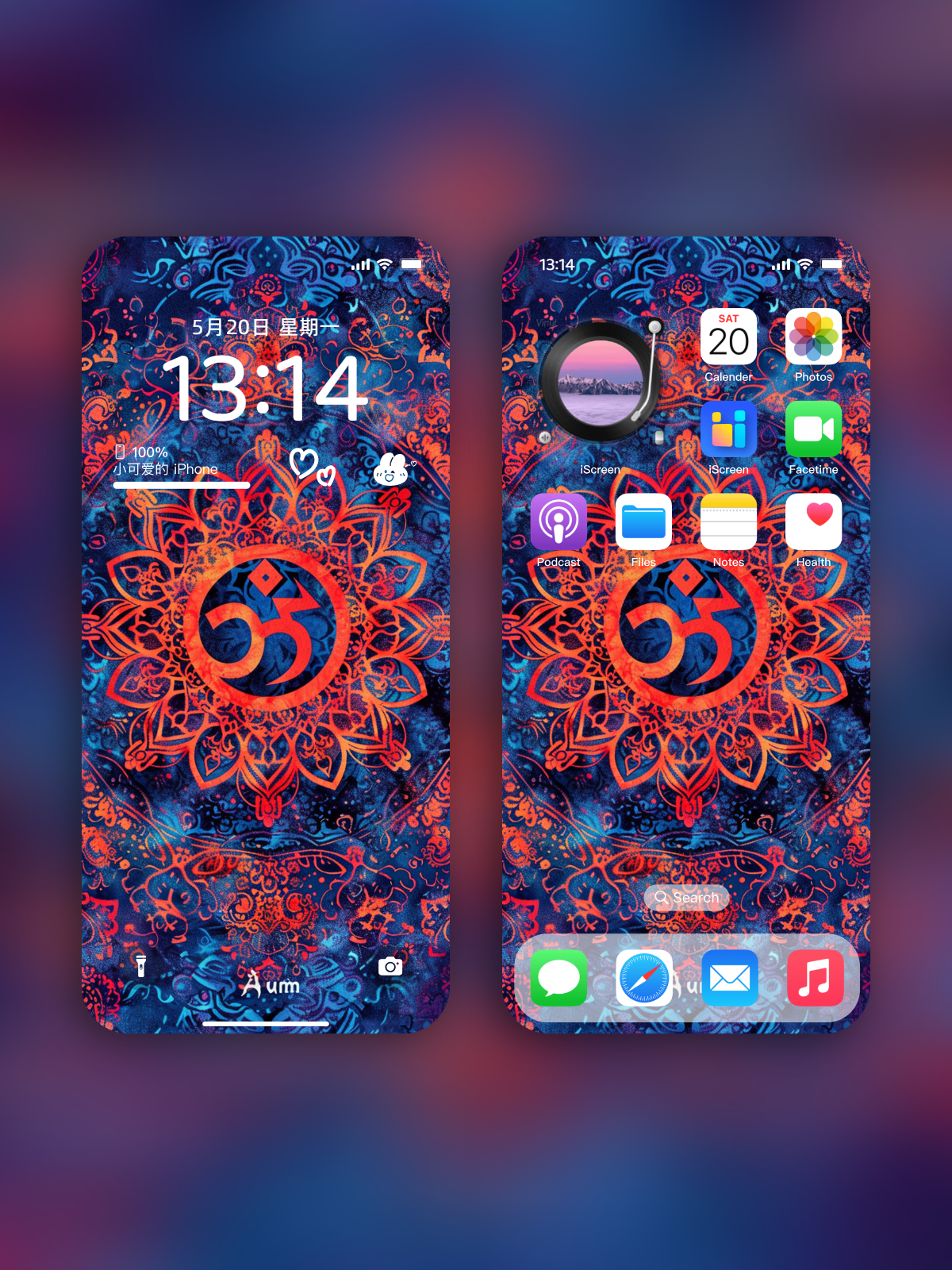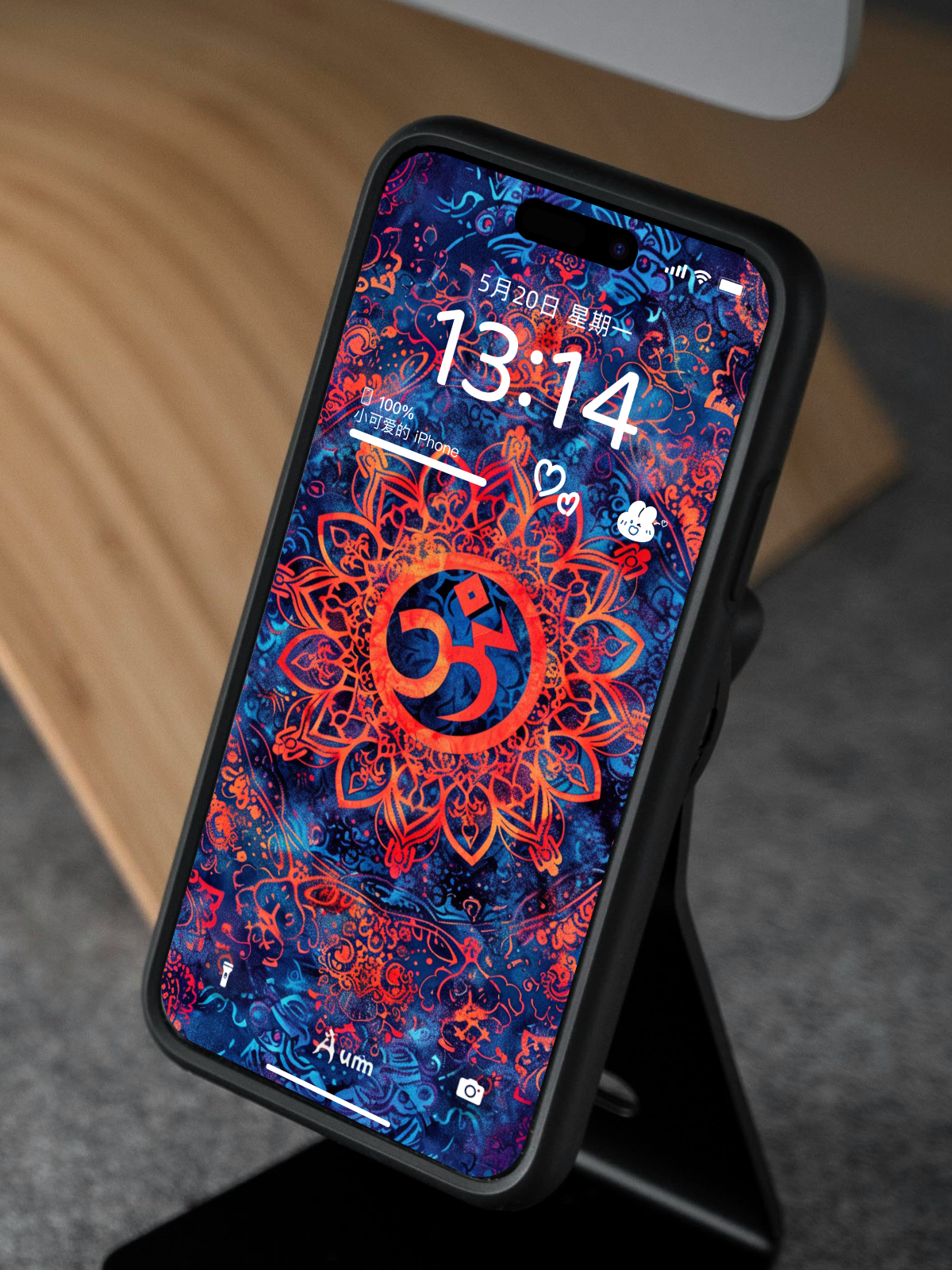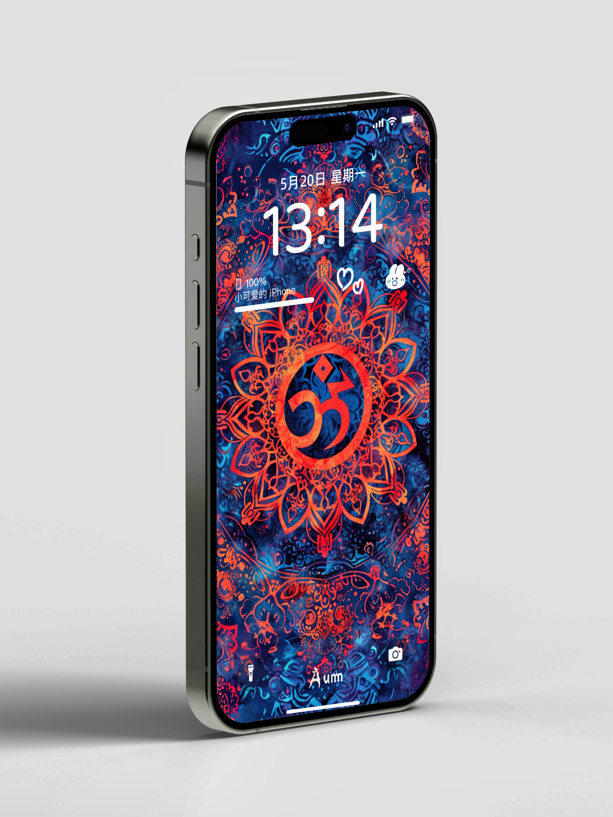 Wallpaper center pattern introduction: "ॐ" pronounced Om, is a pronunciation (Sanskrit "ॐ") that first appears in the Hindu classic Vedas. Ancient India believed that "Om" was the origin of all things in the universe, the first vibrating sound of the universe, which represented the source of the beginning of creation and the foundation of all things. Om helps to relax the brain, refocus the brain, reduce distractions, relieve emotions, start ourselves into a more peaceful state, promote physical and mental balance, awaken the power within ourselves to generate energy, lead us to the higher levels of the soul and connect with the universe. (* From a scientific point of view, scientists have also found that chanting Mantra (* including Om *) has the effect of slowing breathing, calming and calming the heart rate. So singing is thought to be good for the mind and body.)