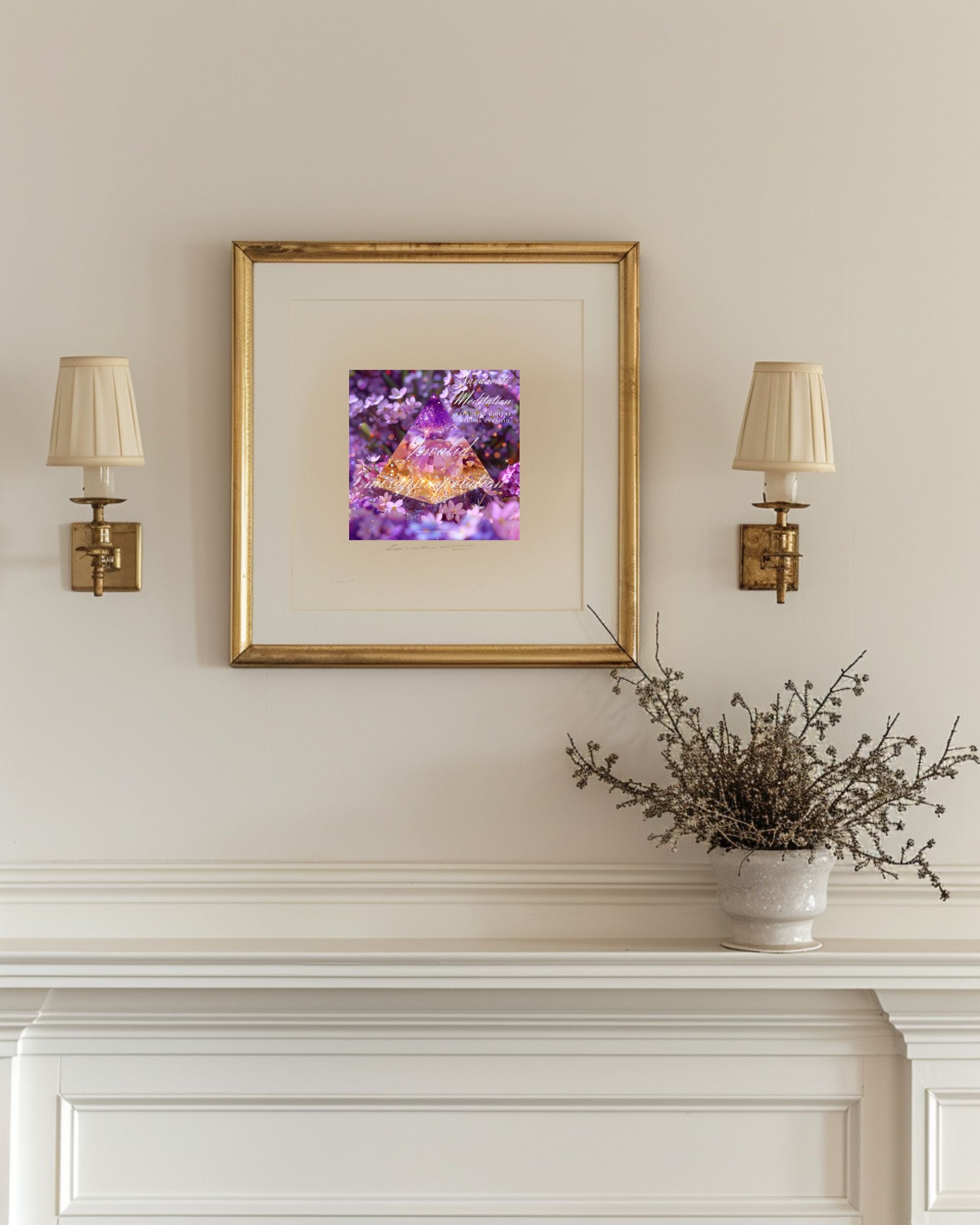 作品意境: 本作品靈感來自於《傲慢與偏見》中的經典臺詞:“你完全地、徹底地、熱烈地佔據了我的心。”這幅作品的意境如同一部浪漫史詩,充滿了財富與愛情的雙重祝福。金色的寶石在繁花的簇擁下璀璨奪目,象徵著無盡的財富與繁榮。紫色和粉色的花朵在畫面中競相綻放,甜美而溫馨。晶瑩剔透的寶石和盛開的鮮花,表達了對豐盛生活和美好愛情的嚮往。在這片絢麗的花海中,你可以找到屬於自己的財富與愛情,享受人生的美好與豐盛。