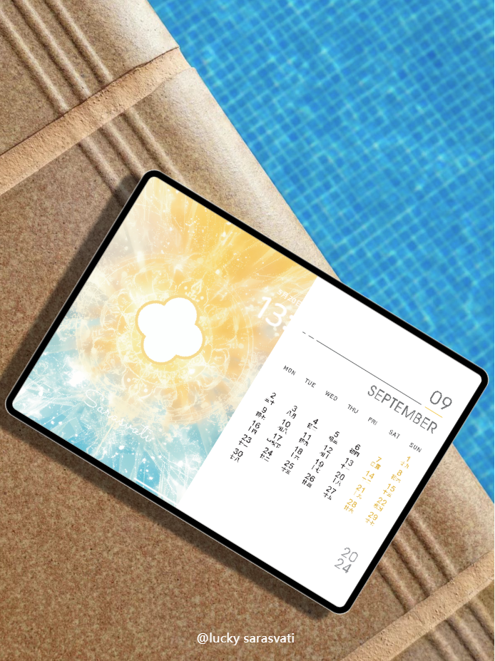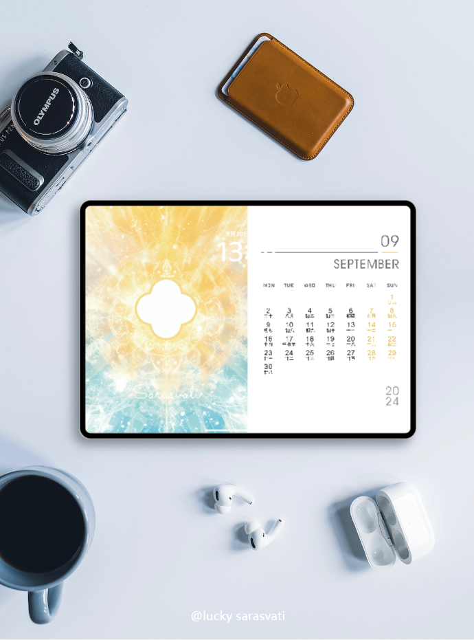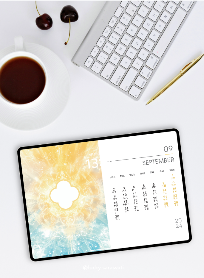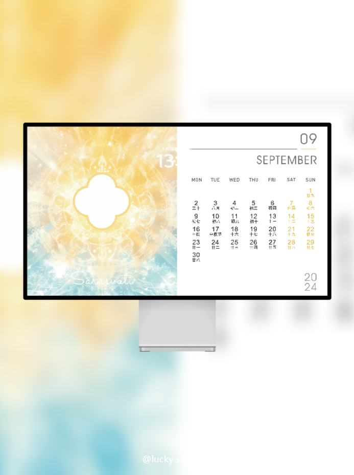 Calendar with the full version of the energy wallpaper: Sarasvati Energy Wallpaper "Golden Wheel Light" Spiritual&Meditation&Wealth series, the energy wallpaper itself can be used for any time, season or month. Click on the image below to find this wallpaper~