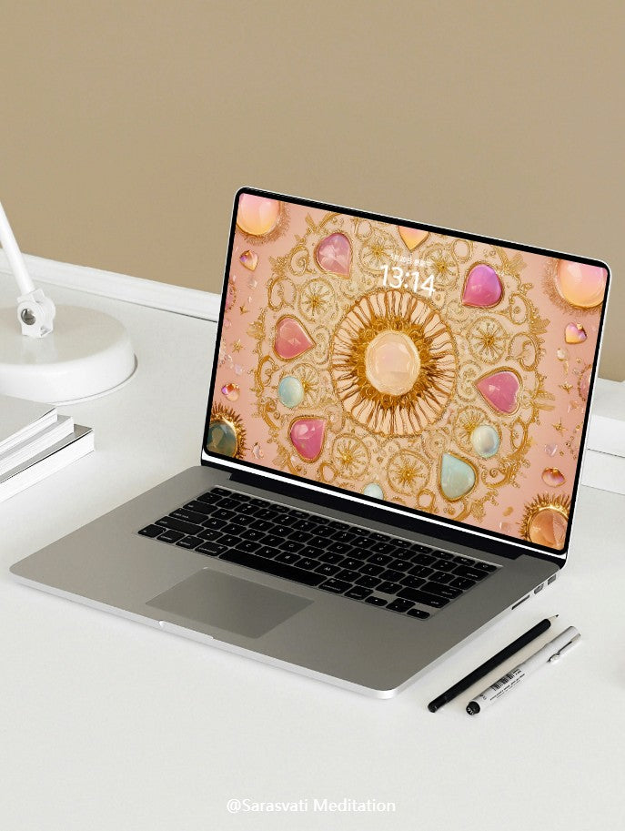 美音天能量壁紙 "绮光金缘" 財運系列 高清 限量发行 Sarasvati Energy Wallpaper "Ethereal Light Gold Fate" Wealth series HD Limited edition