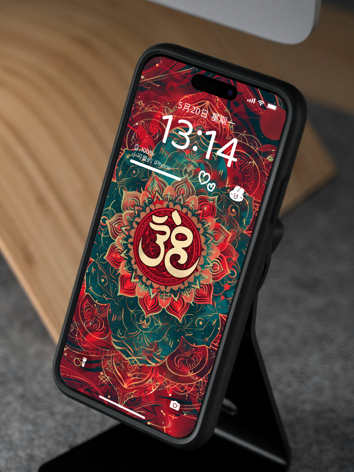 壁紙中心圖案介紹: 「ॐ」念Om,是一個發音(梵文「ॐ」),最早出現於印度教經典《吠陀經》中。古代的印度認為”Om”是宇宙萬物的起源,是宇宙第一個震動的聲音,它代表創造開始的源頭,萬物的基礎。Om有助幫助大腦放鬆、重設大腦注意力、減除雜念、舒緩情緒、令自己開始進入比較平靜的狀態、促使身心平衡、喚醒自身內在的力量從而產生能量、引領我們進入更高的靈魂層次並與宇宙連接。(*在科學的角度,科學家亦發現唱頌Mantra (*包括Om在內*)有令呼吸放慢、心跳平穩且緩和的作用。因此唱頌被認為對身心靈都很有益處。)